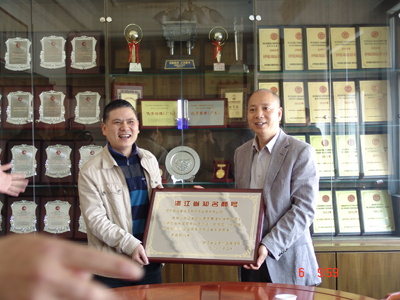 ● 公司“致远”企业商号获省知名商号。2012年4月6日,金华市婺城工商分局局长傅道德同志来我公司授匾牌。