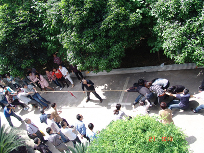 ● 2012年4月27日上午,公司机关人员与试验所机关人员在公司大楼前举行了拔河友谊赛,分男女混合、男子组合、女子组合进行,比赛激烈,场面热烈,营造了良好的交流氛围。