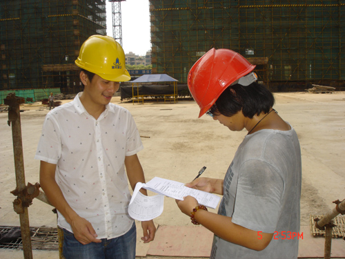 绿城海棠项目致远监理部监理员现场测试塔落度