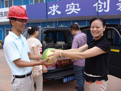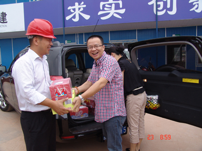 公司中心领导一行首先来到了五百滩岛内基础设施配套工程项目部,为顶着酷暑坚持奋战在一线的监理人员送上了西瓜、饮料和夏令用品。公司中心领导听取了该项目工程监理规划和进展情况的介绍,对五百滩岛内基础设施配套工程项目部注重细节的监理工作表示了赞赏,并在五百滩项目监理工程部总监洪建功的带领下,实地察看了工地作业现场,对现场监理工作进行了一番有益的交流探讨。