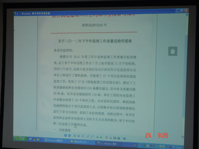 会议首先用PPT的形式传达了公司总监沟通会的精神,特别对巡检、监理工作中应注意的事项进行了重点解读,并对现阶段一些大型房地产公司对监理公司的高标准要求进行了说明,让大家了解监理工作的发展方向和趋势,要用发展的眼光来武装监理业务的知识技能。随后,总监张宝玉还安排了监理工程师安全方面继续教育网络课程学习,利用网络教育与PPT结合形式,让员工学习现场安全管理方面知识以及如何规避监理风险等方面知识,收到了良好的效果。