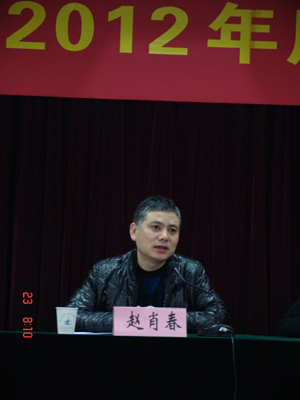大会第一项议程是由公司总经理赵肖春讲话。赵总首先祝大家新年好,并对大家在大雾天能按时从各地赶来开会表示感谢。接着赵总没有像往常一样宣读工作报告,只是把2012年度工作简要总结为两个不好三个亮点。两个不好:一是2012年成绩不好,签回来的合同不多,与2011年比有一个很大的滑坡,二是得奖工程为历年来最少的一年。三个亮点:一是收入突破了五千万,二是承接了第一个项目管理合同,三是咨询这块获得了良好业绩。随后,赵总就2012年公司进行的人力资源优化项目作了说明,其目的是希望把我们监理公司历年来存在的一些问题和发展的方面,理清一个思路来,使公司发展得更好。我们在2012年准备了很长时间,咨询工作也开展了很长时间,有整整一年,我们将蓄势待发,寻求在2013年有所突破,在所有事情理顺状态下,只要上下齐心,共同努力,我们有充分信心在2013年能重新回到2012年的目标。从2013年的一月份开始,我们已经取得了一个非常好的开门红,在春节以前,公司已基本有把握的合同将近2000万。只要我们按照新的思路,有决心有信心去做,致远公司的发展肯定是会越来越好的。