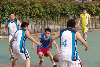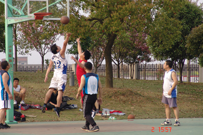 双方队员经短暂的热身运动后,比赛直接开始。经过几个来回,我方队员在体力、技术、配合上与对方明显存在差距,虽积极主动努力拼搏,但比分还是一直落后对方十多分。特别是对方一高一矮两位选手配合得相当到位,传、投、补等动作一气呵成,行云流水,不时获得场上阵阵喝彩声。我方杭州项目部的新队员李玉龙,人小胆大,不畏强手,发挥也相当出色,他在身高无优势的情况下,凭借过硬的球技与良好的体能以及与队友的积极配合,打出一个个高水平的球,频频得分,死死咬住两队的比分,获得了大家一致好评。最后金华外国语学校篮球队以100:84的比分赢得这场比赛。