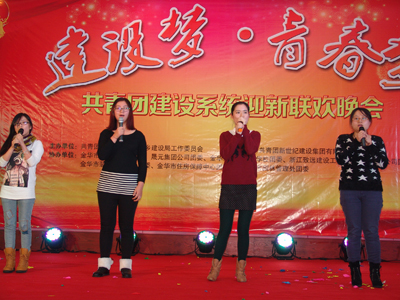 2013年12月13日晚7时,由共青团金华市住房和城乡建设局工作委员会主办、新世纪承办的共青团建设系统“建设梦·青春梦”迎新联欢晚会在江南会二楼会议室举行,有二百余名建设局系统青年团员参加了晚会,共青团金华市委、市住房城乡建设局、局系统有关单位等领导应邀参加了联欢晚会。