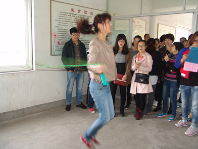 去的时候,似乎还下着小雨,当我们到达社区的时候,天却放起晴来了,太阳也露出了笑脸,好像在欢迎我们的到来。我们来到二楼活动室,里面挤满了人,已有共建单位在开展活动了。首先是投掷飞镖、乒乓垫球、单人跳绳三连环运动,每个单位选四人组成一组,以用时最少的队为胜队。我公司选组的四人,表现不错,取得了较好的成绩。最后一项是拔河赛,有六家共建单位参加,分两两对抗,我公司和枊湖小学抽到第三组。前两组队因力量比较悬殊,还未来得及喊“加油”就分出了胜负,轮到我们第三组,双方实力旗鼓相当,拔河进入了持久战,比赛高潮一波又一波,每边啦啦队 “加油”的呼喊声响彻整个枊湖社区的上空,经过几个回合的激烈拉锯战,终因我方人员体力率先耗尽而无缘决赛,但队员顽强拼搏和团结协作的精神受到了社区和活动人员的交口称赞。