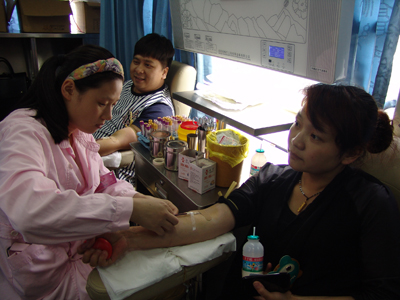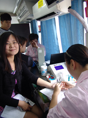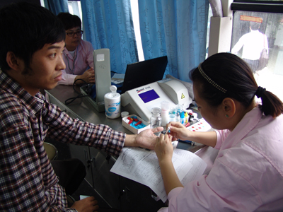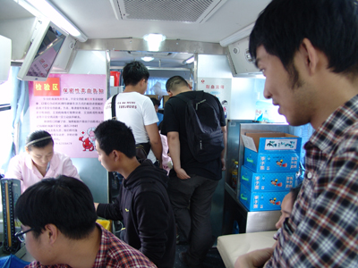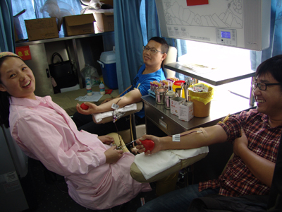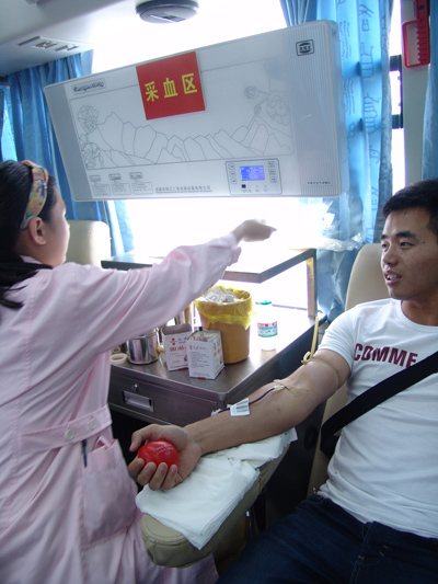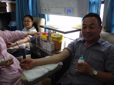 已多次献血的项目总监冯建峰带领其项目部人员最早来到,第一个填好表、验完血,并以轻松的形象完成了献血,他的行动无形中感染了在场的每一个人,大家都先后在愉快的有秩序的氛围中完成了献血。特别值得一提的是公司驾驶员陈志信同志,刚上车要献血,接通知有急事赶往工地,后听说献血车还在,又赶回来献血,献完血又匆匆赶往工地,爱心可嘉。作为同一个支部,金华市建筑材料试验所也有三位同志参加了献血活动。
