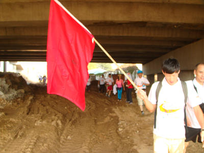 公司毅行队伍通过第一个打卡点
