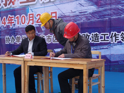 公司总监童健波现场签订建筑施工扬尘防治责任书