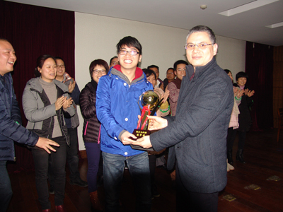 活动把所有参加人员按照循环报数分成六个团队,以PK、竞争的方式进行。首先,每个团队选出一个团长和政委,确定团队名称,并对竞争结果作出承诺。然后,唐朝营老师在授课的同时,提出问题,由各团队员抢答,按各团队人员回答问题的准确度给予相应团队适当的分数,并累加各团队所得的分数,作为各团队竞争的总分数。第一团队承诺不拿冠军团长“剃光头”、第二团队承诺不拿冠军团长“跑会场五十圈”、第三团队承诺不拿冠军团长“跑会场二十圈”、第四团队承诺不拿冠军团长“上下蹲五十个”、第五团队承诺不拿冠军团长“跑会场六十圈”、第六团队承诺不拿冠军团长“跑会场五十圈”。俗话说,有压力就有动力,此话真实不虚。在作出上述承诺后,各团队员都自感压力不小,在抢答问题的时候,举手个个奋勇当先,唯恐落他人之后,抢答场面一度火爆。第一时段,一团小步领先;第二时段,六团领先。“在竞争面前,压力越大,动力越大。”此话此时在这里得到了最佳诠释,作为六个团队中唯一承诺要求“剃光头”的第一团队,在第三时段的竞赛中,爆发出了超常的能量,以遥遥领先的总分数问鼎了“执行力内训冠军”奖杯。而作为其它五个团队团长,此时也“愿赌服输”,该蹲的蹲,该跑的跑。在他们的带领下,后来陆续有人加入了奔跑的队伍,最后竟汇成了全体人员奔跑的洪流,充分体现了我们致远人在竞争环境下的勇气、责任、担当和团结奋发的有为精神。