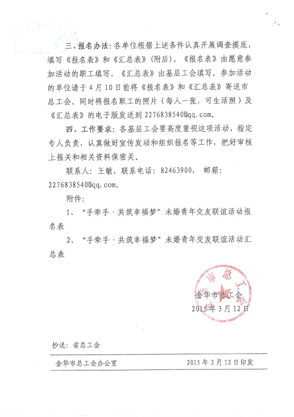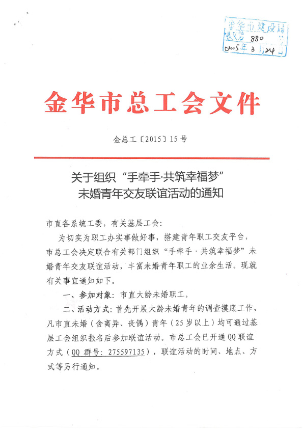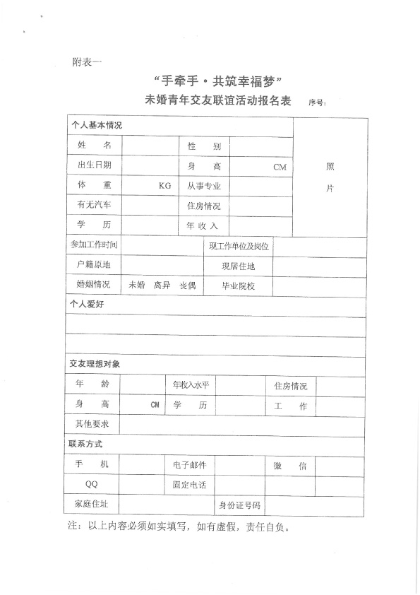 关于组织“手牵手.共筑幸福梦”未婚青年交友联谊活动的通知