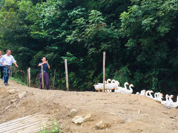 经过近两个小时的车程,我们来到了井上村结对共建的农家果园基地,井上村的李书记和叶主任已早早在基地等候了。一番寒暄之后,叶主任马上带我们去参观结对共建农家果园基地和鹅鸭饲养基地。在鹅鸭饲养基地,我们见到了雪白健壮的鹅鸭,清澈的溪流。叶主任介绍说,他们饲养的这批鹅鸭只有三四个月左右,平时只吃天然食物,还没到食用最佳状态,到年底时应该是最佳时,可为春节餐桌增添别样的美味。路上,经过大片的猕猴桃基地时,叶主任介绍说今年是种植猕猴桃的第一年,没结什么果子,是作为做老根的一年,明年进行嫁接,将进入成长收获期,他们现在有200亩左右的猕猴桃果园基地,明年扩大到300亩左右,还将陆续开辟火龙果、草莓、梨等果园基地,到时请大家来体验摘水果。叶主任还带我们参观了山泉净化设施,通过净化后的水是供井上村全村人饮用的自来水。公司支部委员罗季英马上想到可装一瓶经过净化过的饮用水,利用我们意诚检测公司的技术优势,分析水质成分和有无危害元素等指标,给井上村的村民饮用水健康保驾护航,可见结对共建的优势又体现出来了。