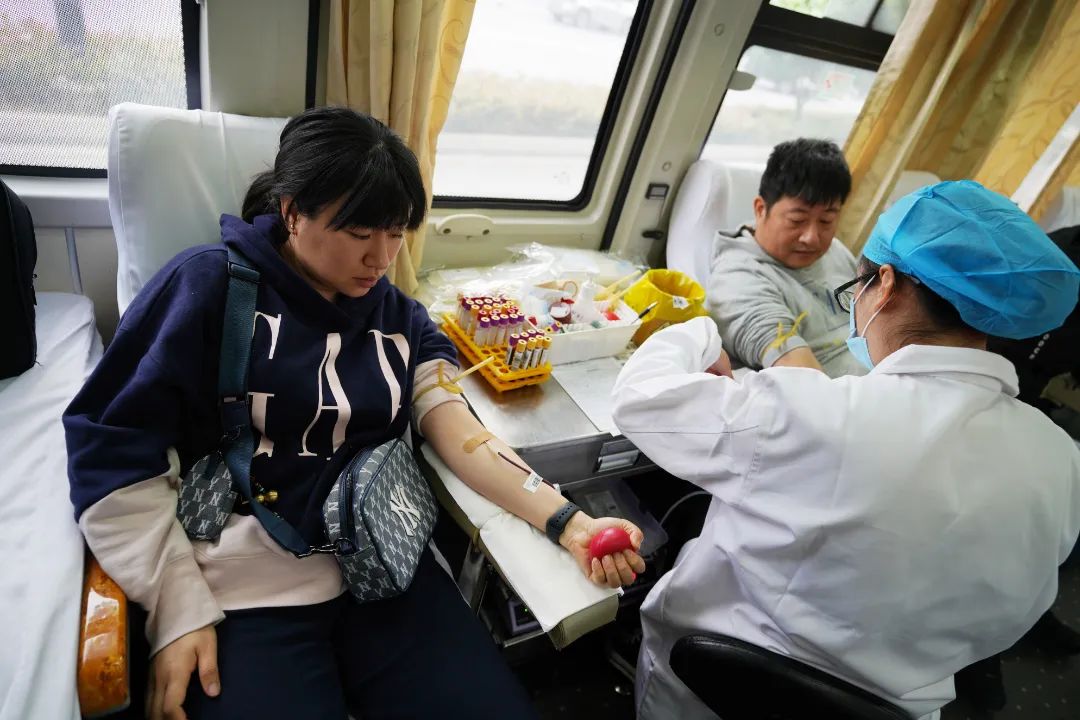 邱翔和盛宏建是今年新加入本次献血队伍中略带紧张但内心坚定的“献血新兵”。其实在今天成功献血之前,邱翔还有过一次尝试。前几年他路过市区献血屋的时候,便萌生了想献血的善念。“我当时就主动去献血,但因为那时候作息不规律经常熬夜导致献血指标不达标,没能捐献成功,只能遗憾离开。”他有些不好意思地说,“今天我除了一点点紧张外,现在内心更多的是激动之情,无偿献血让我的人生价值有了另一种体现,心中感到很自豪,希望通过献血能够帮助更多有需要的人。”他坚定地说。